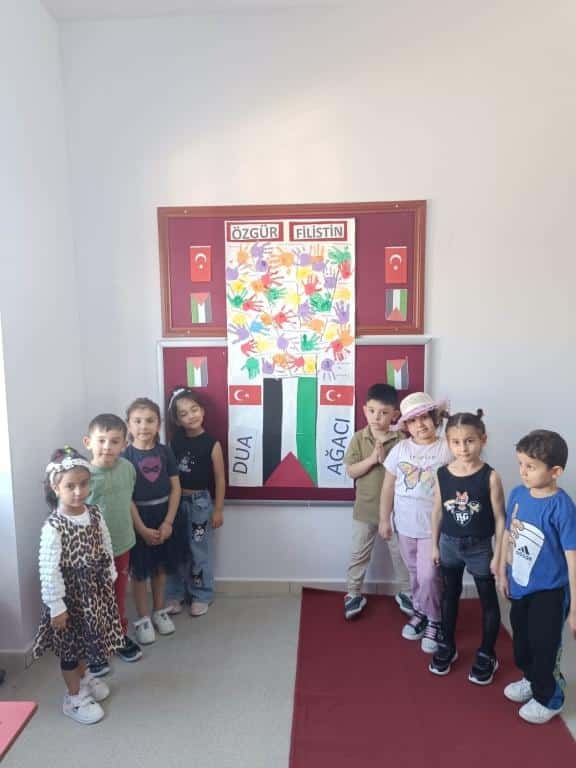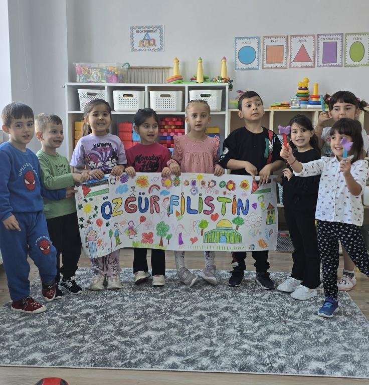 Programda ayrıca öğretmenlerimiz tarafından Filistin’in tarihi, kültürel yapısı ve günümüzde yaşanan olaylar hakkında bilgilendirici konuşmalar yapıldı. Öğrencilerimiz, sergilenen etkinliklerle hem empati duygularını güçlendirdi hem de barış ve kardeşlik mesajlarını dile getirdi.